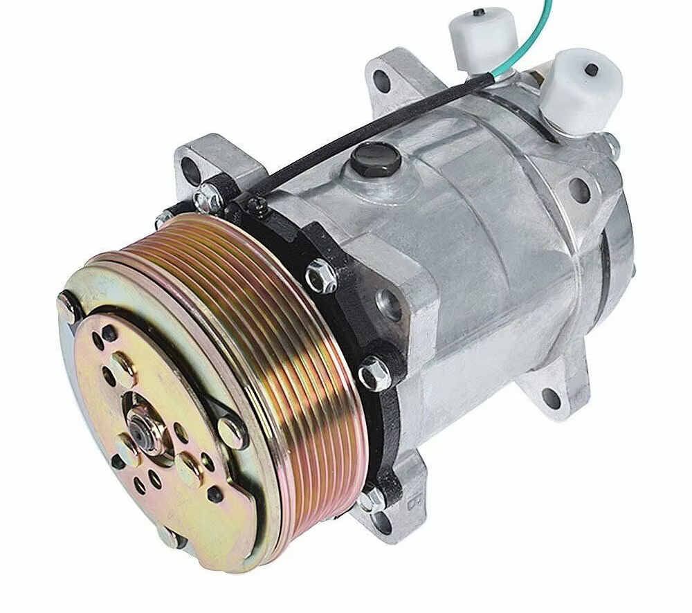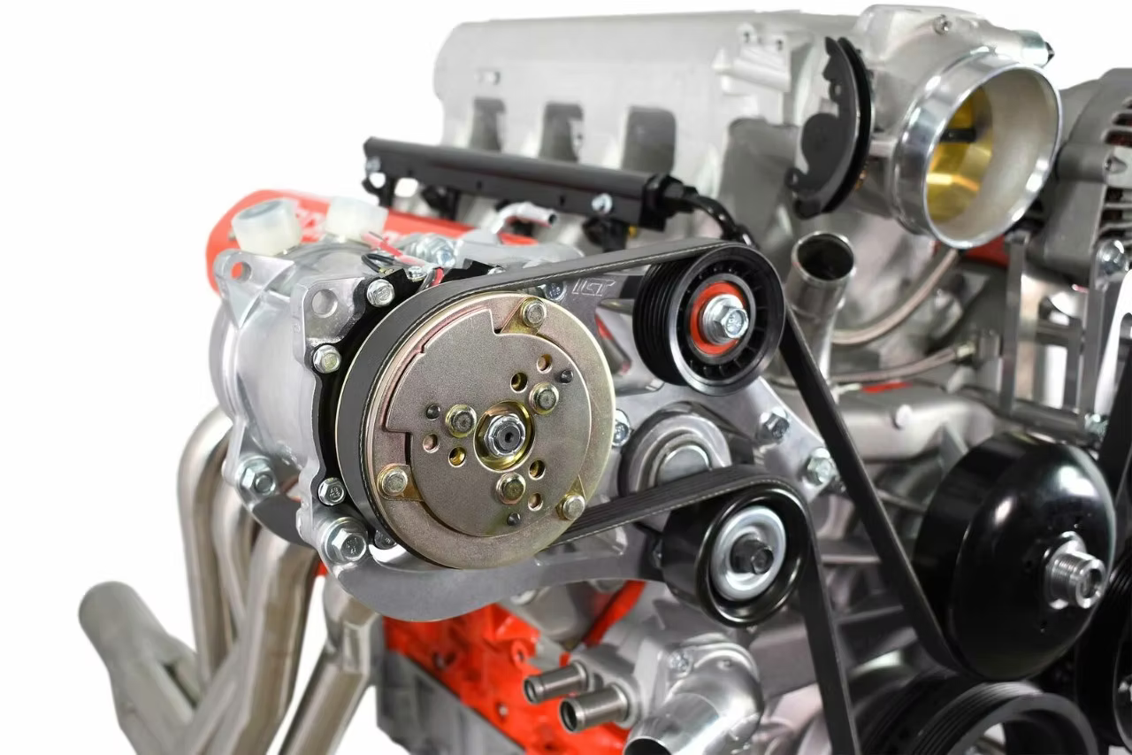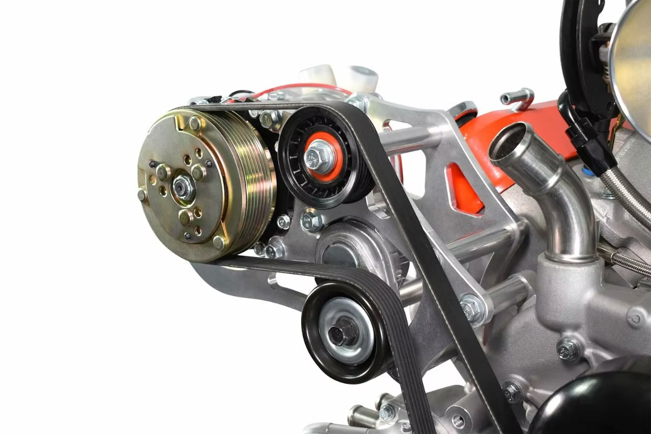 Set de soporte para compresor de aire acondiconado, incluye soporte, compresor y polea tensora.